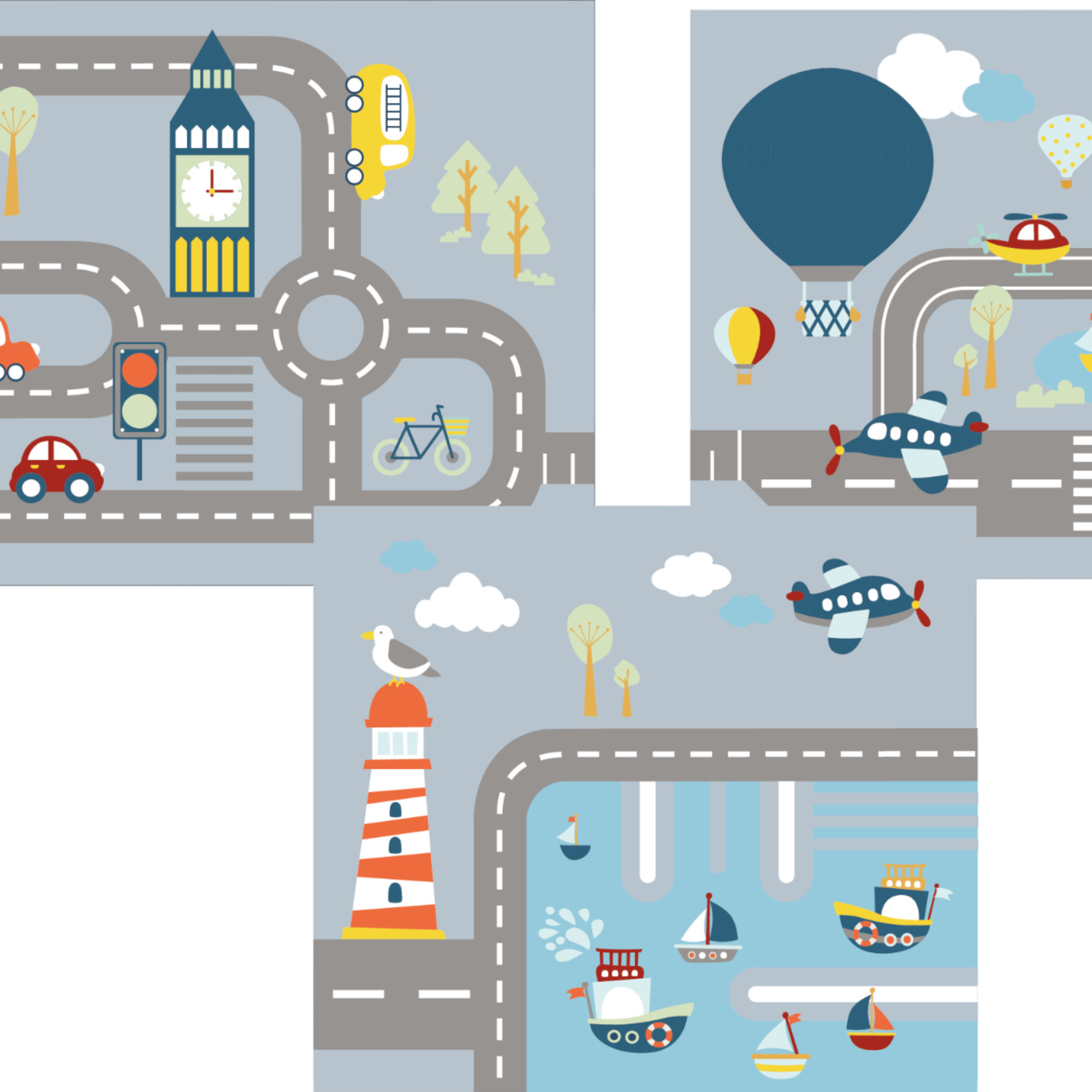 Flexa Υφασμάτινες κουρτίνες παιχνιδιού για υπερυψωμένο κρεβάτι, σετ των τριών τεμαχίων με θέμα Οχήματα.