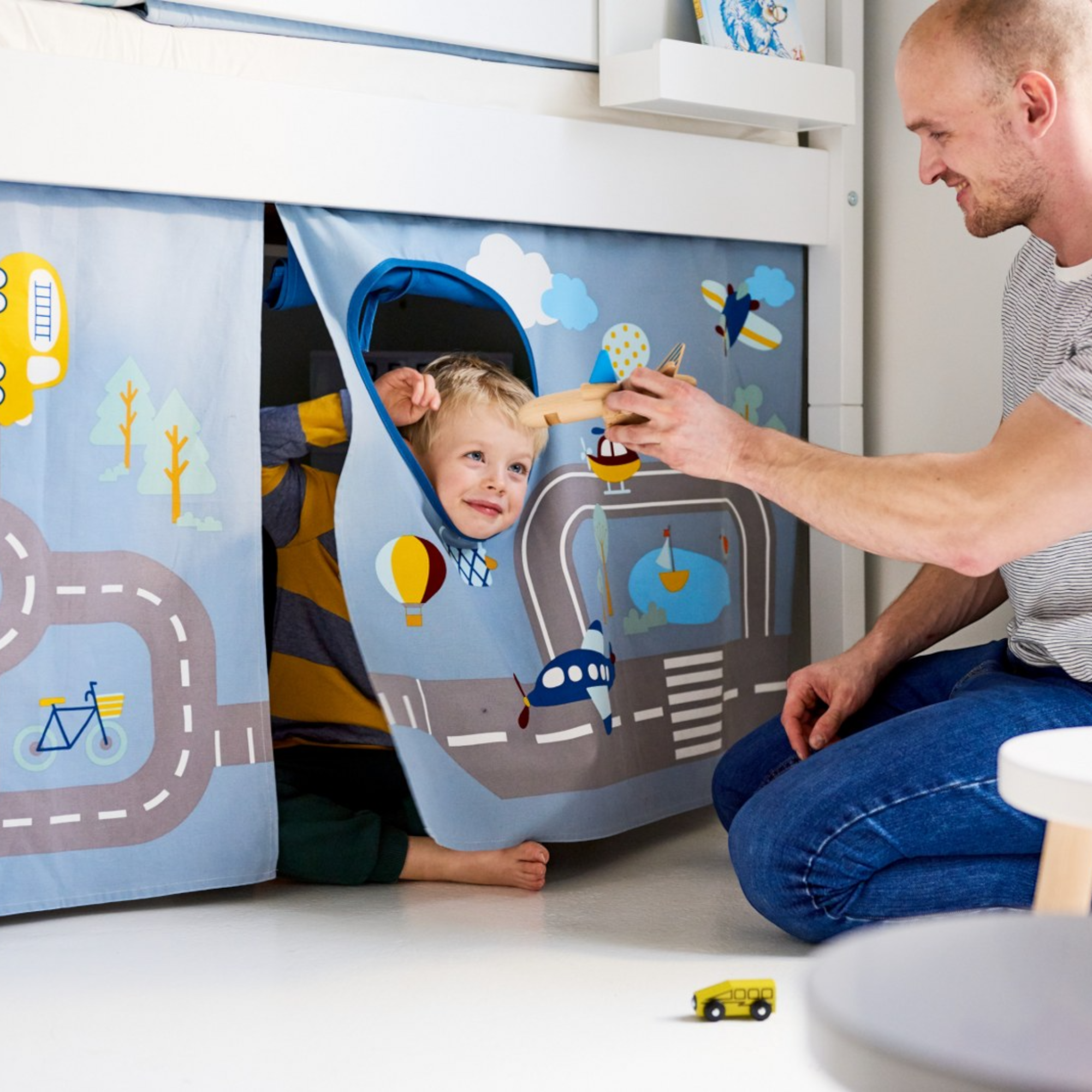 Bring life to the children's room with the FLEXA cave! With vibrant colors and playful designs, they transform the bed and enhance the imagination of children by creating a unique space for play and relaxation.